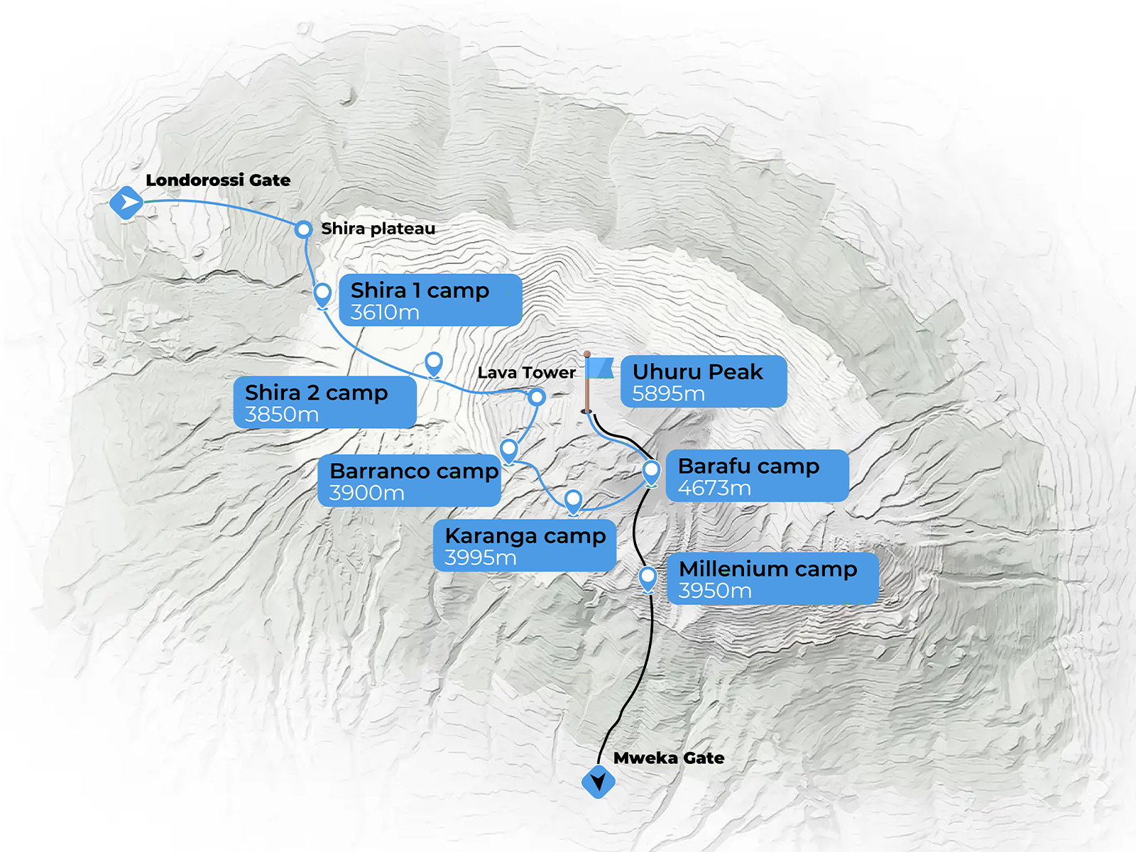 • All transfers to the mountain and back to your Moshi hotel